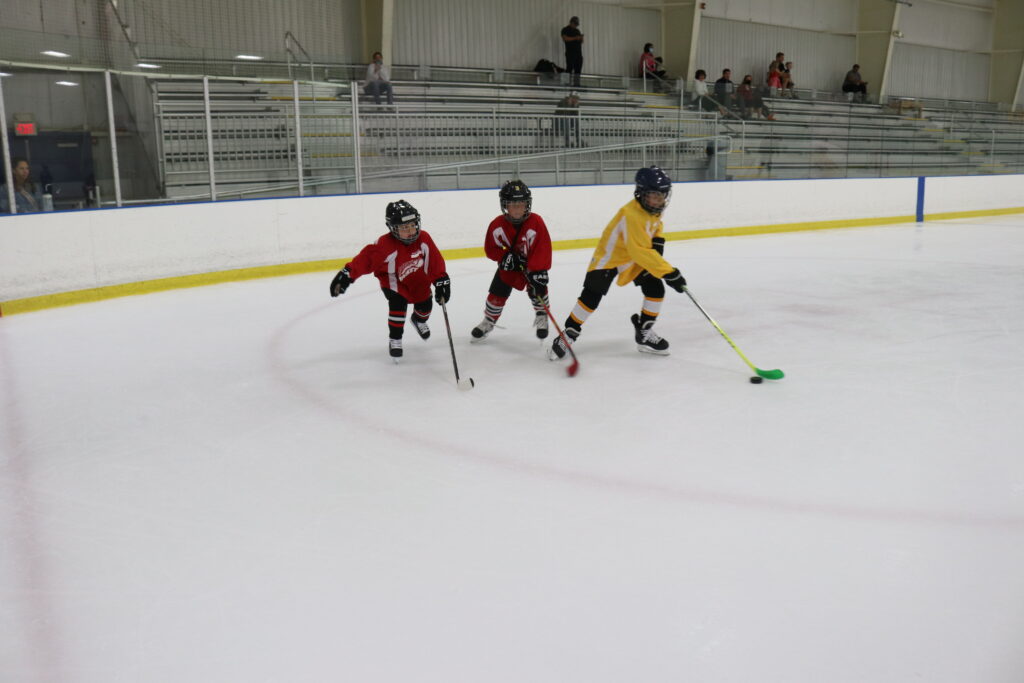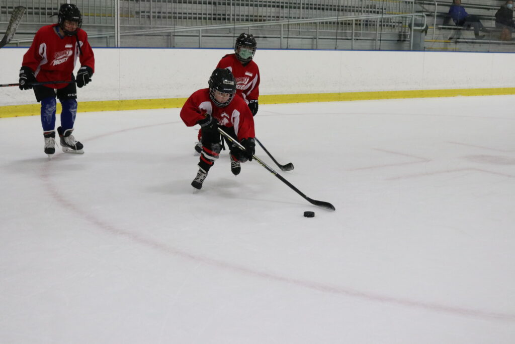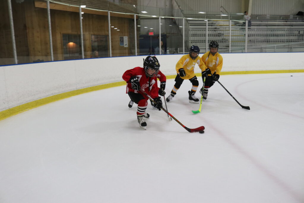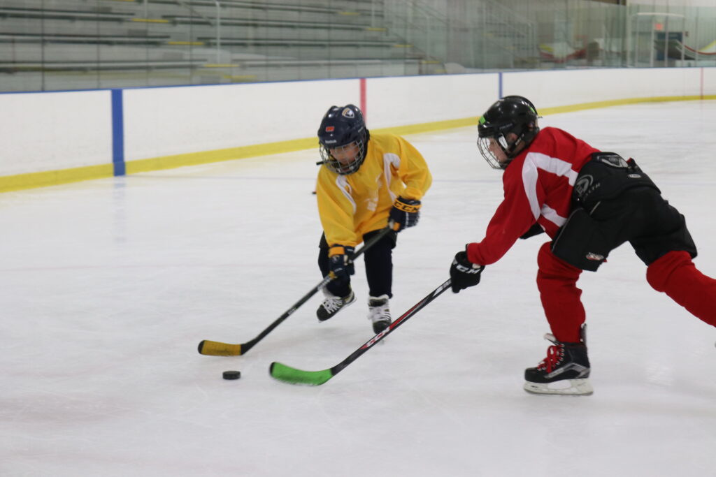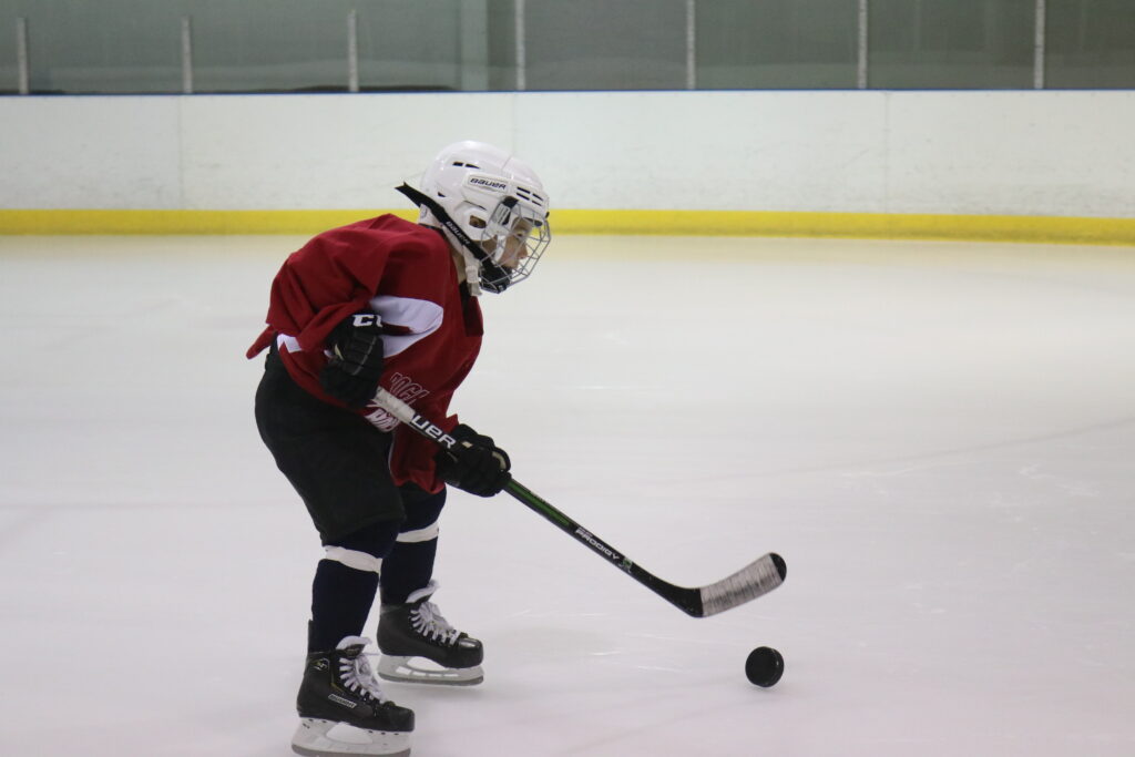 Hockey players improving their skills at Stick and Puck. A great way to spend a day off school or winter break is on the ice. Friendship, fitness and fun.